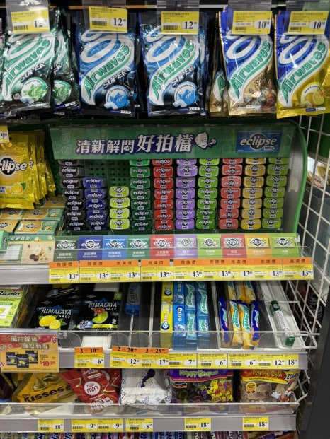 홍콩에선 캔디류가 많은것 같다. 이클립스, 에어웨이브, 푸쵸, 엑스트라(껌) 등~