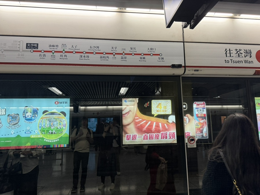 침사추이역에서 몽콕역에 가려면 Tsuen Wan행 지하철을 타야 했는데 지하철 2호선처럼 지하철이 자주 운행해서 편했다.