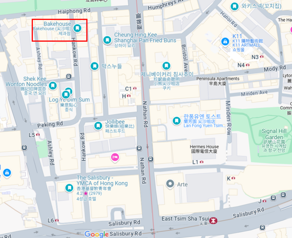 침사추이역에서 걸어서 한 10분정도 걸리는 거리에 위치해 있으며 우리 호텔에서는 걸어서 5분?