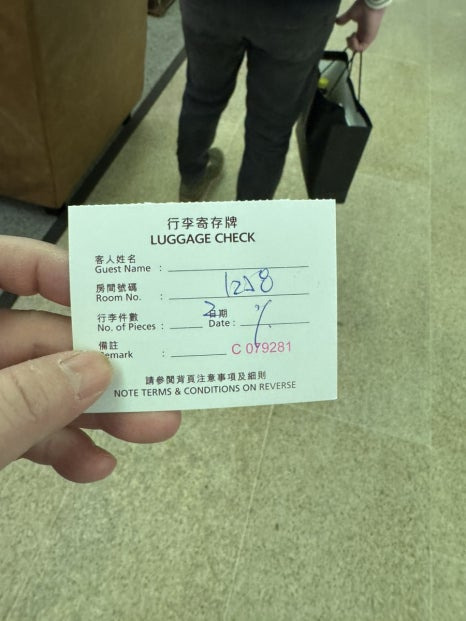 컨시어지 직원이 맡기는 짐 개수를 센뒤 호텔 룸넘버와 개수를 적은 쪽지를 준다.