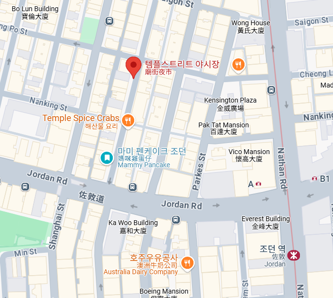 템플 스트리트 야시장은 MTR 조던역에서 가깝다.